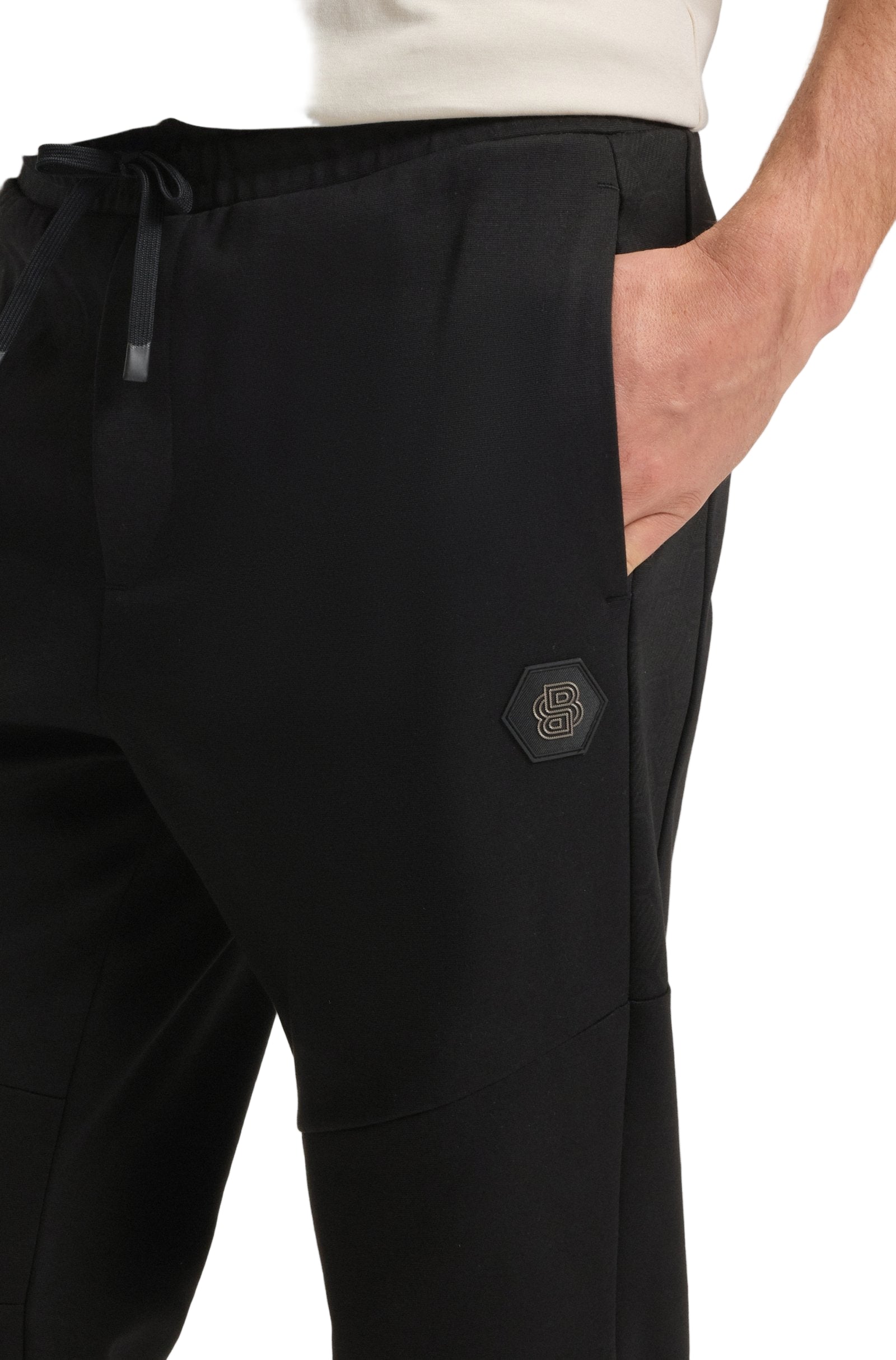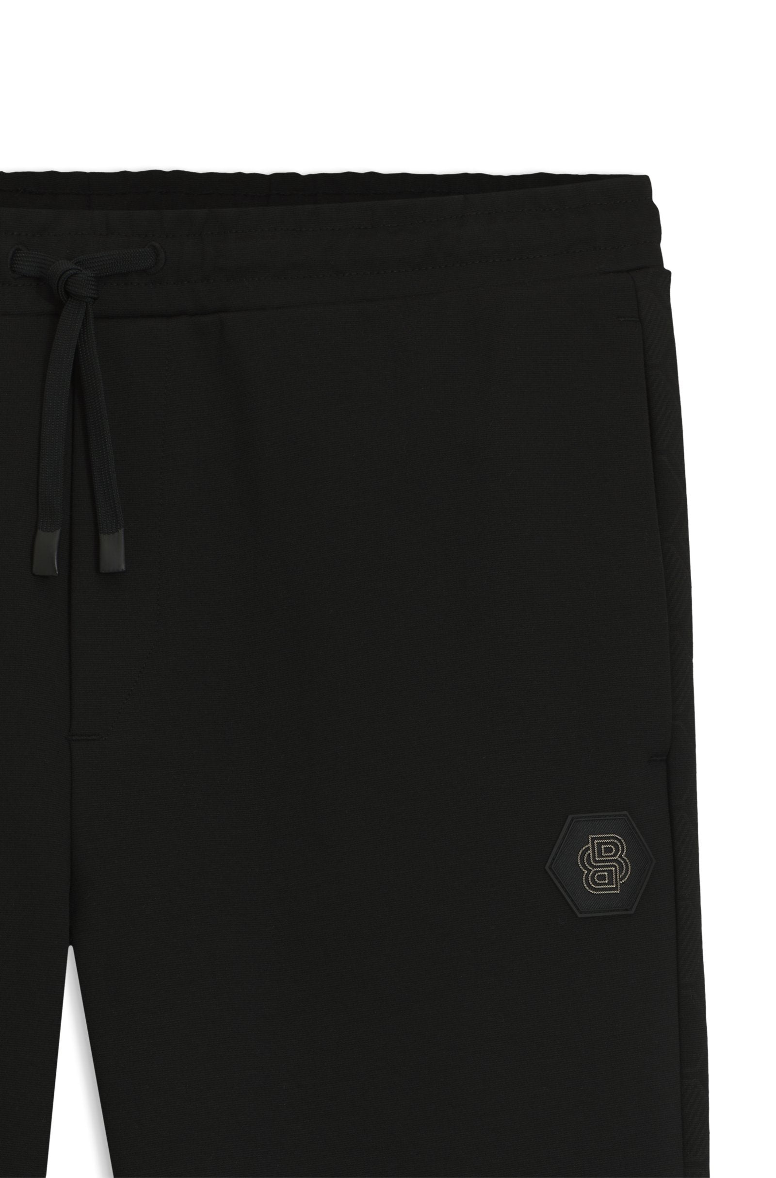 Style: Boss Athleisure men's tapered bottoms, complete with patterned panels at the sides and a double B monogram logo by the pocket.