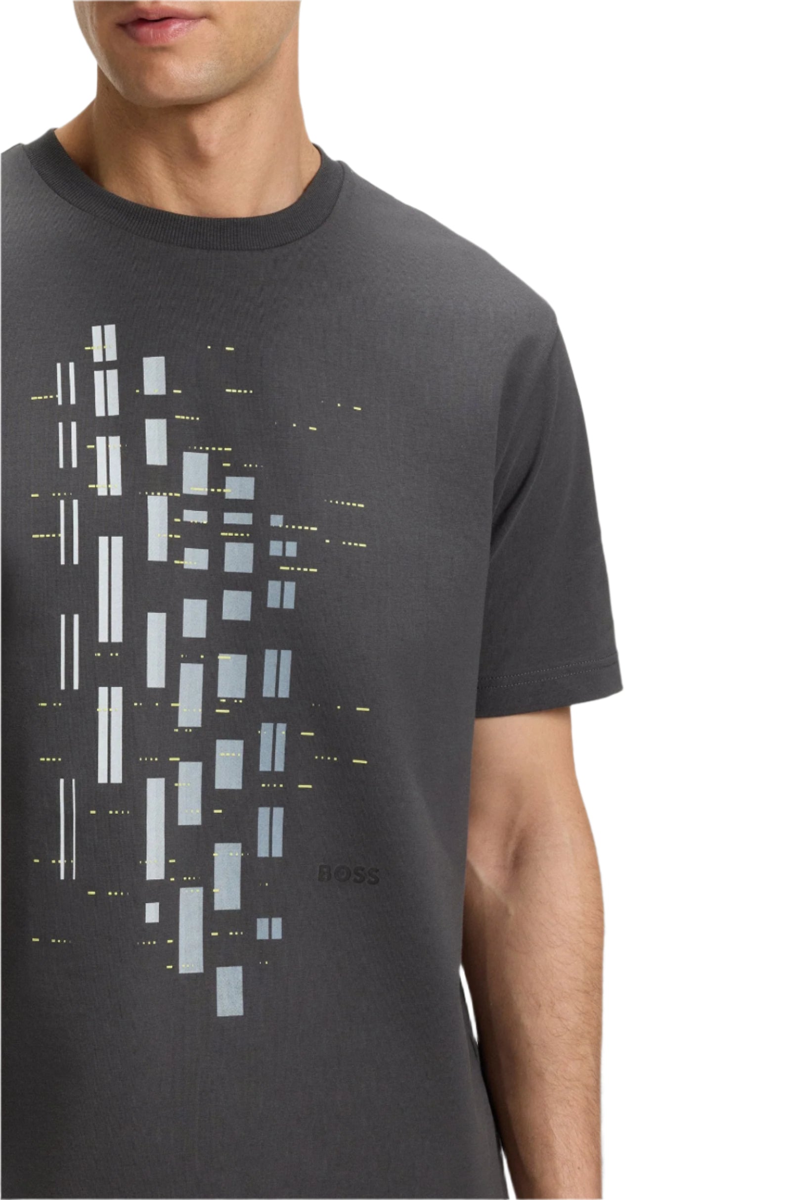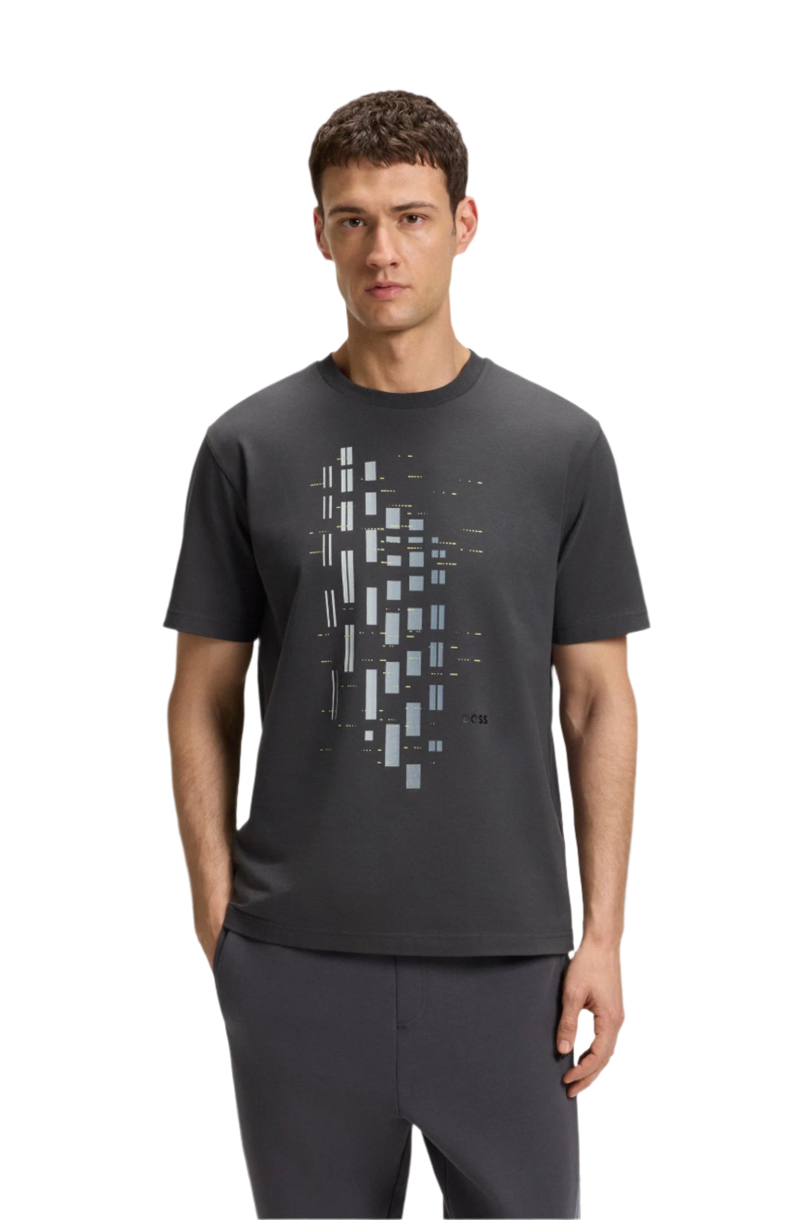 Style: Boss Athleisure men's short sleeve t-shirt, printed with geometric artwork in a degradé effect.
