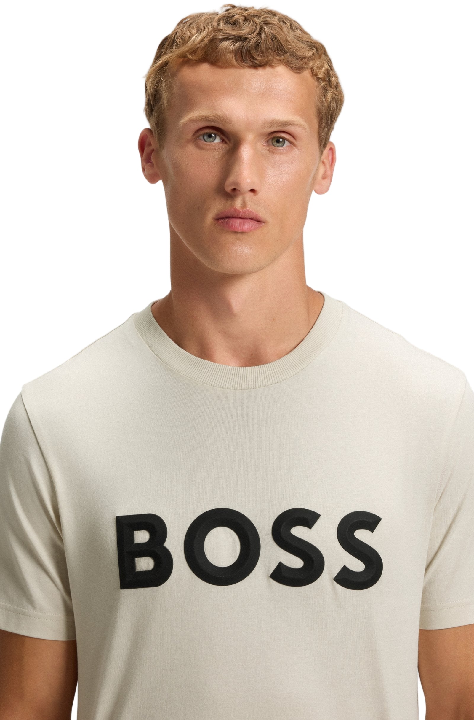 Style: Boss Athleisure men's short sleeve t-shirt, with a large 3D logo across the chest.
