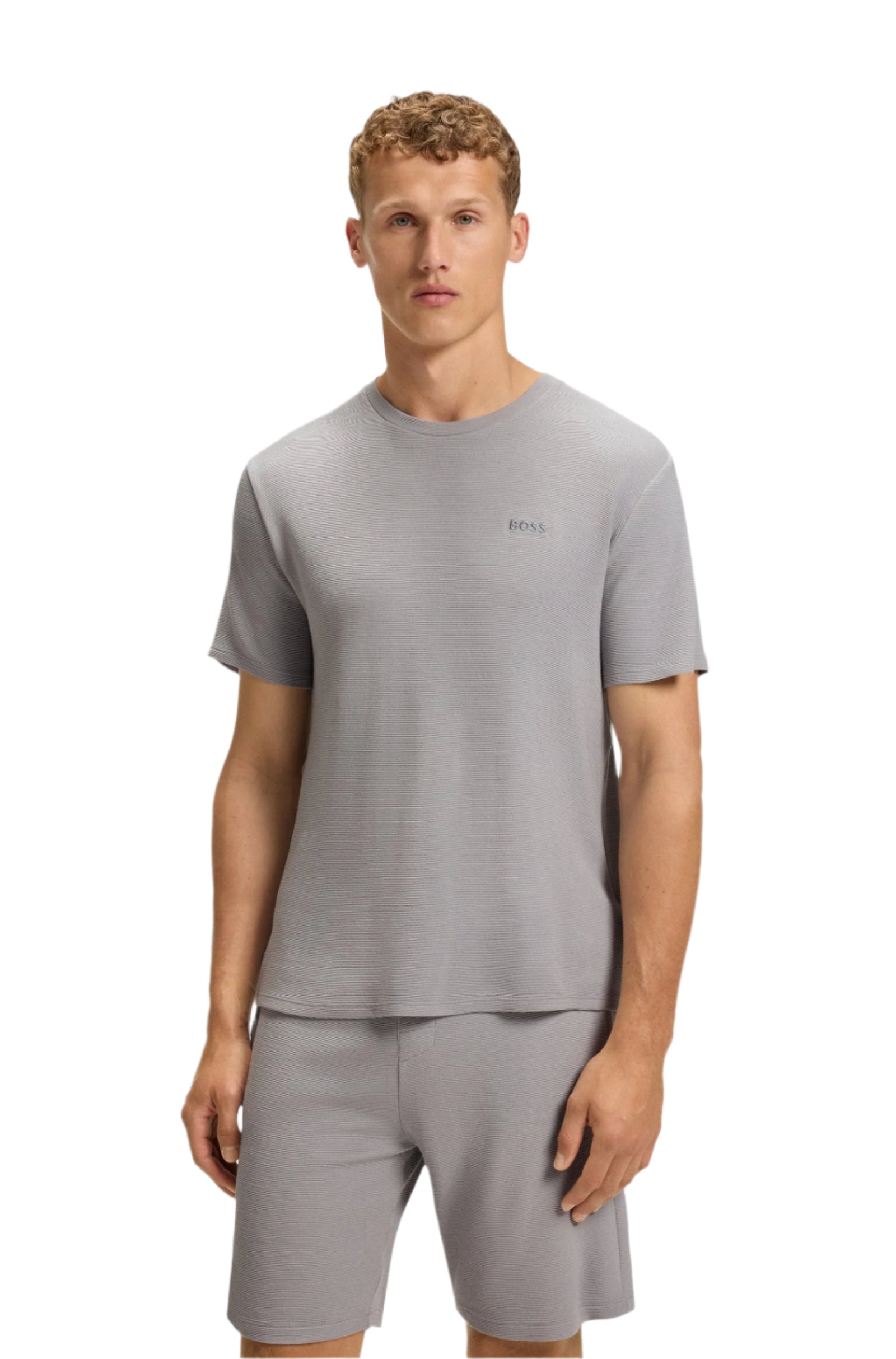 Style: Boss loungewear men's stretch-jersey t-shirt with an embroidered logo.