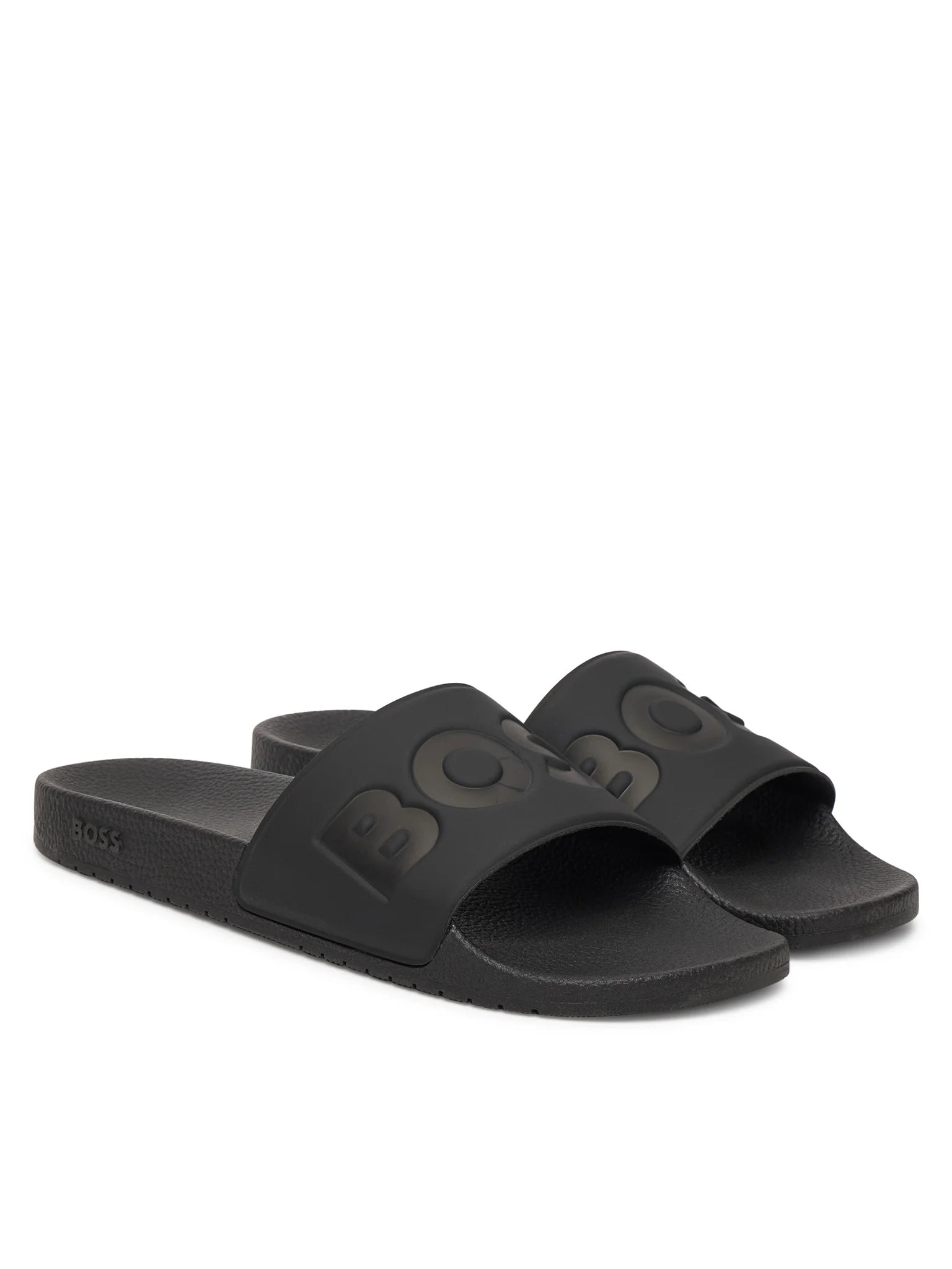 Style: Boss men's Italian made slides, complete with a large BOSS logo on the upper piece.