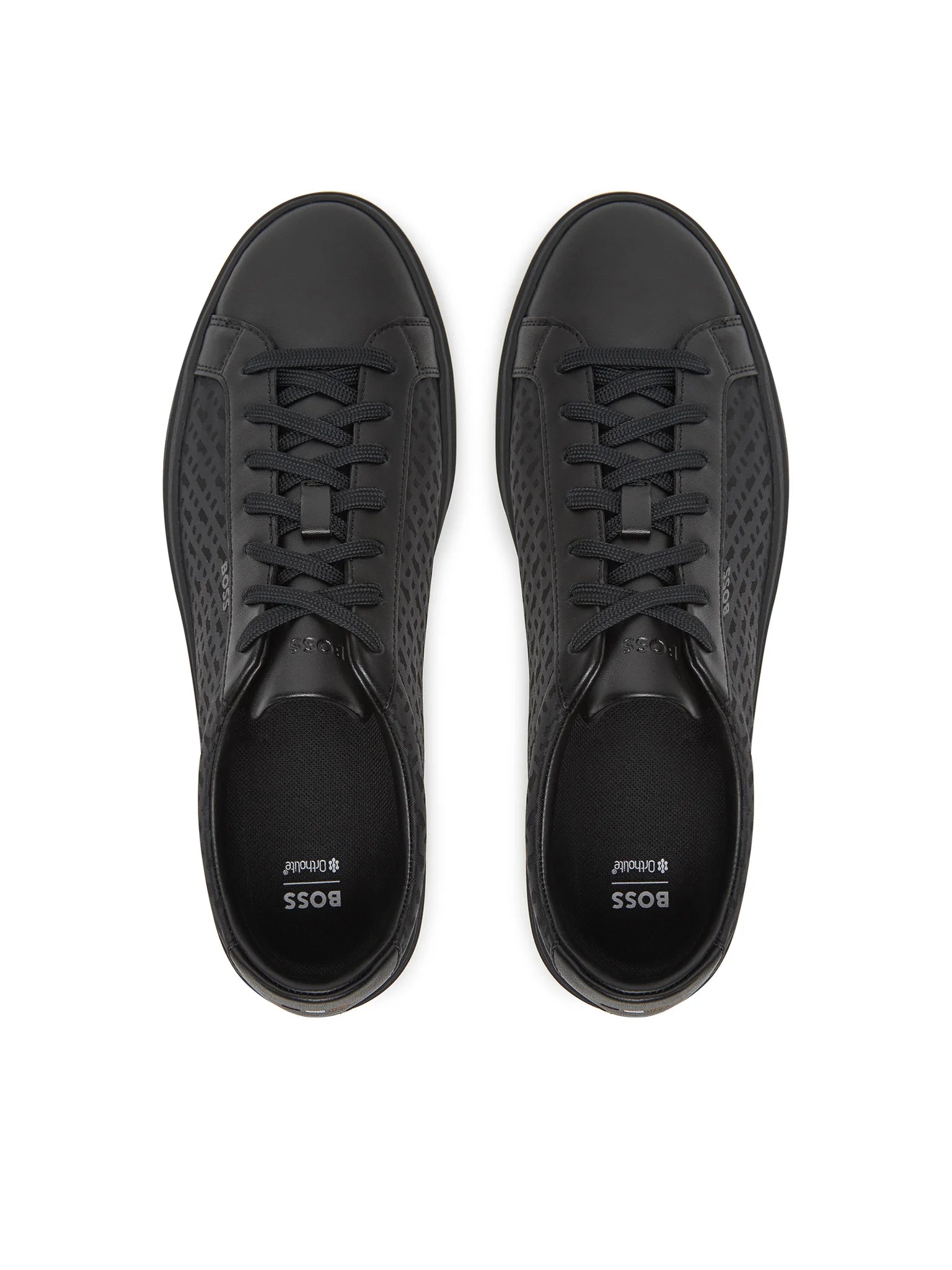 Style: Boss men's low-top sneakers, featuring monogram print panels and understated logos.