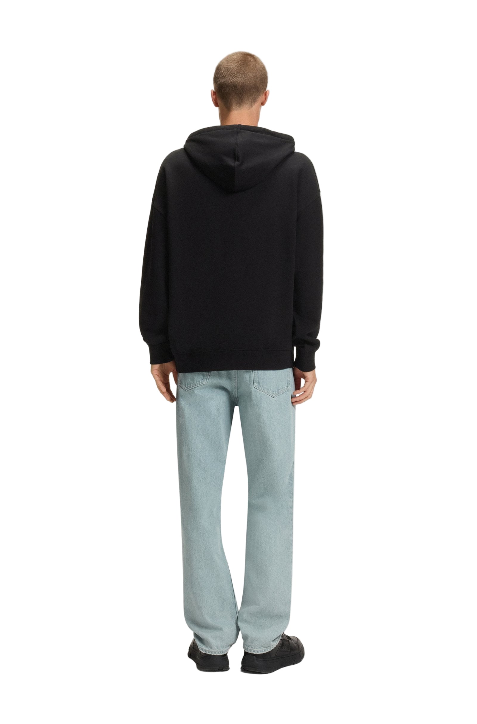 Style: Hugo Blue men's cotton terry hoodie, featuring a textural puff-print logo,