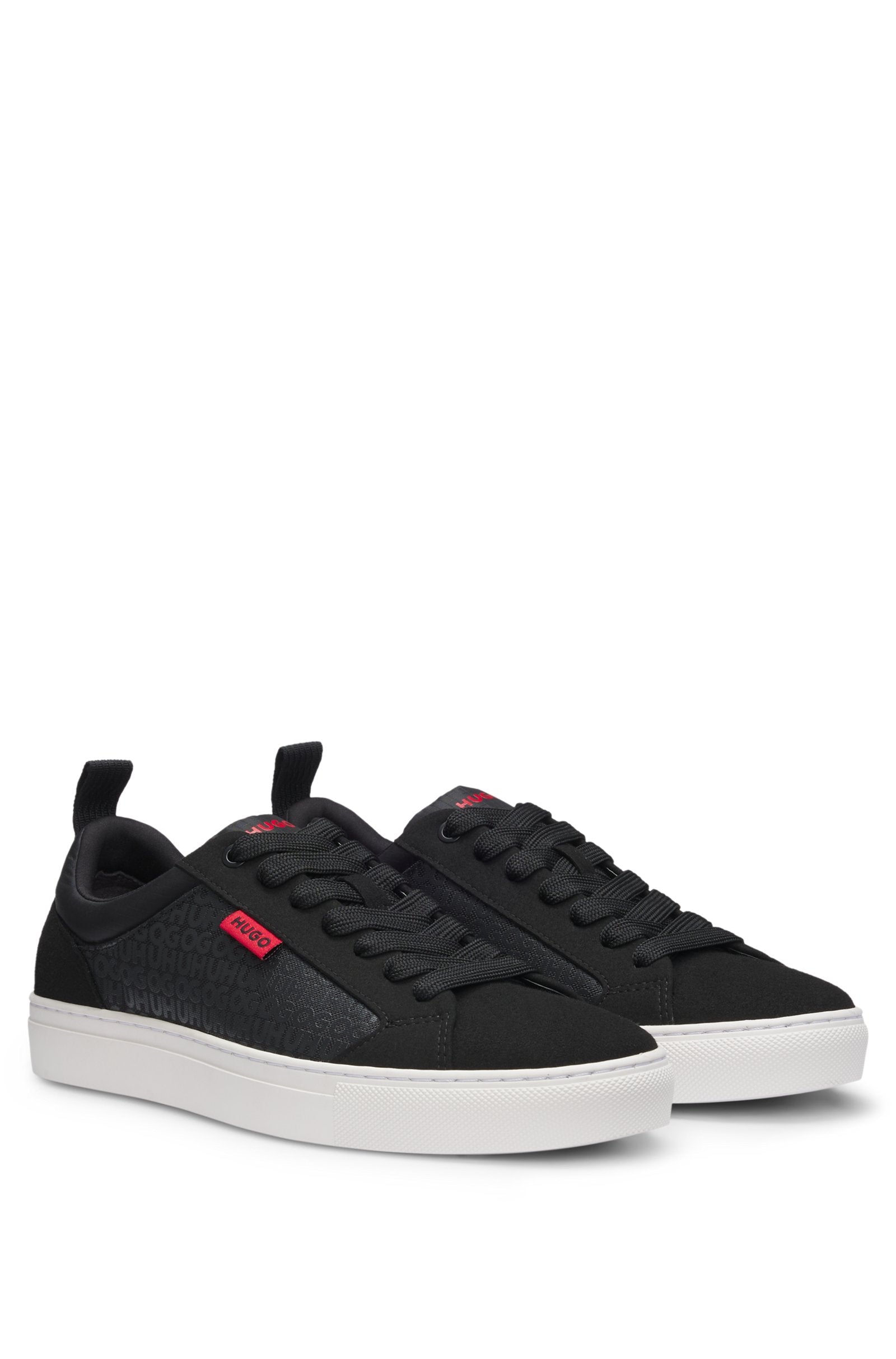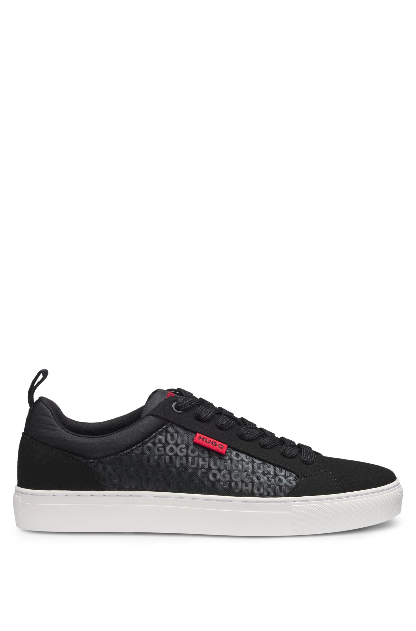 Style: Hugo men's low-top trainers with monogram patterned fabric panels at the side.