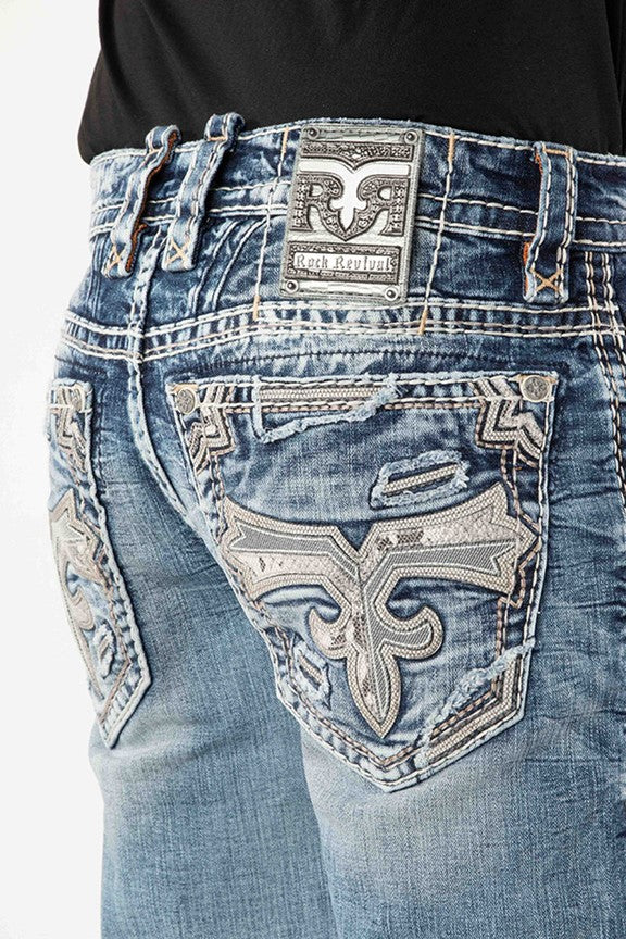 Style Name: Jameel - Rock Revival Men's Jameel Straight Fit Jeans in 34 Length.